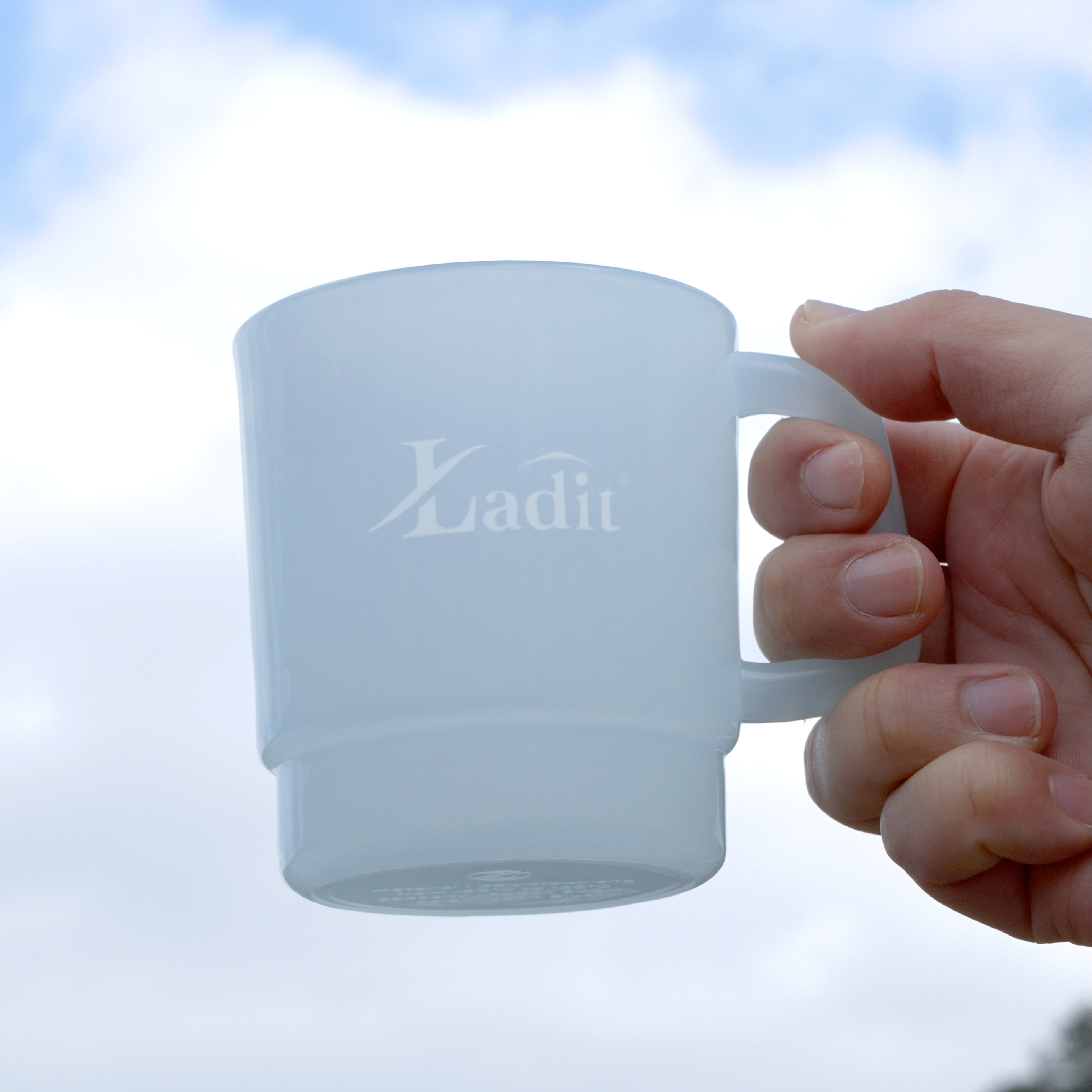 컵 한쪽에는 라디트 로고가, 반대편에는 슬로건이 정제된 형태로 새겨져